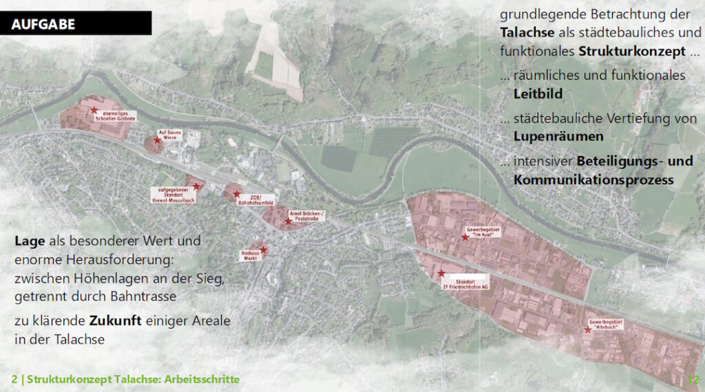 Eitorf, 4.3.2026 – Mit dem Projekt „Talachse Eitorf“ hat die Gemeinde Eitorf einen strategischen Entwicklungsprozess angestoßen, der die zukünftige Ausrichtung eines zentralen Raums innerhalb der Gemeinde langfristig prägen soll. Ziel ist es, bestehende, teils untergenutzte Flächen entlang der Talachse aus dem Bestand heraus weiterzuentwickeln und tragfähige Perspektiven für Arbeiten, Wirtschaft und Lebensqualität zu schaffen. „Mit der […]